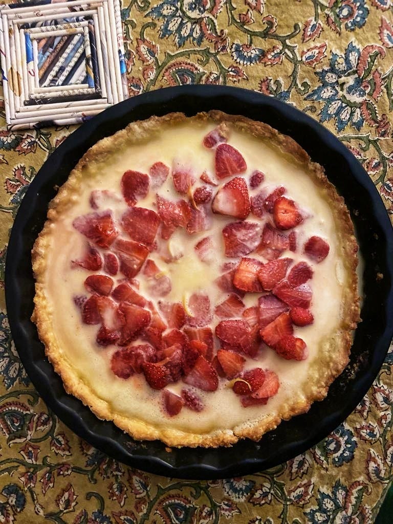 Strawberry and lemon curd tarts, made from scratch. I mean, it’s not that great a thing to crow about. Dear and loving women friends of mine are whizzes at this. From scratch, mind you. But, it was just lovely to do this over a week. To put together the dough, to freeze it overnight, to bake it in two rounds, to carefully slice strawberries, to whisk lemon curd. All of it. So slow. Such delayed satisfaction.
